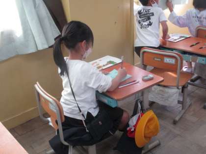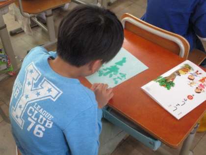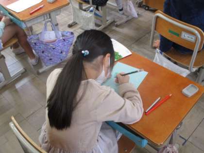 今日の書写の学習では、水書を行いました。鉛筆と違い、筆で字を書くのは難しく、苦戦している様子でしたが、一画一画確かめながら集中して取り組むことができました。姿勢や筆の持ち方にも気を付けて頑張りました。