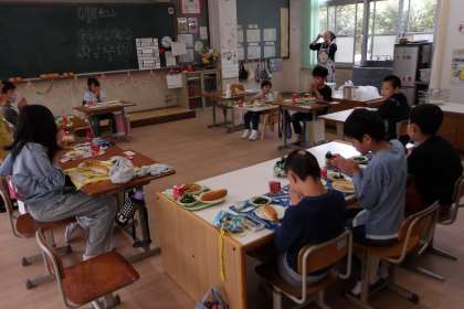 1年生にとっては初めての、2〜6年生にとっては久しぶりの給食です。みんなで楽しく、おいしくいただきました!!