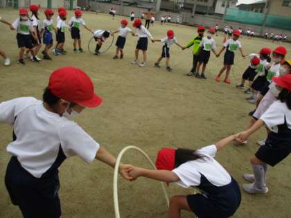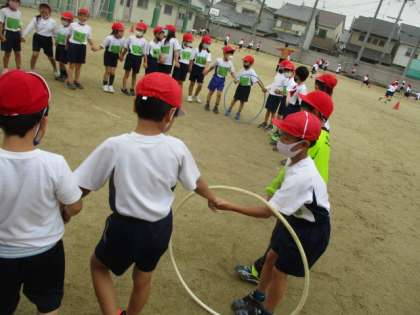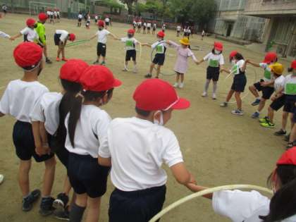 今日もからだほぐしを行いました。天気もなんとか持ちこたえ、みんなでたのしく活動することができました。明日は学年で50m走を行います。