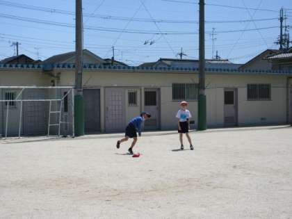 体力テストを意識して、遠投をしました。子どもたちは元気いっぱいにボールを投げていました。「先生、見て見て!」と言って投げるところを進んで見せてくれました。