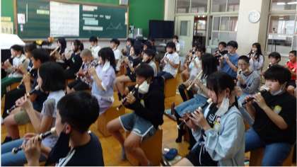 音楽の時間に,リコーダーで「アメイジンググレイス」を練習しています。美しい音色を奏でていました。次回も楽しみです。