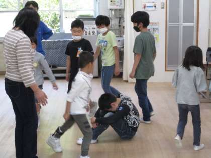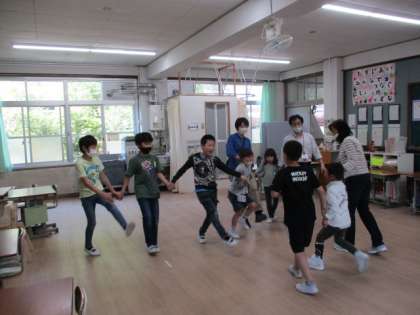 今日は、「かごめかごめ」と「はないちもんめ」をしました。
