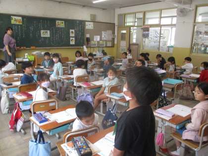 道徳の学習では、交換授業を行っています。担任の先生と違う先生の授業で、子どもたちは少し緊張しながら授業を受けている様子でした。