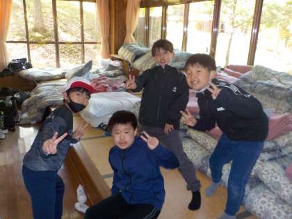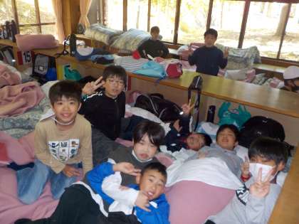 初めての宿泊学習。宿泊棟に大盛り上がり。