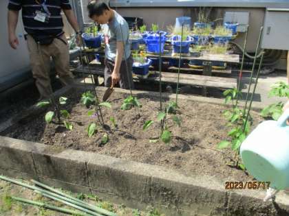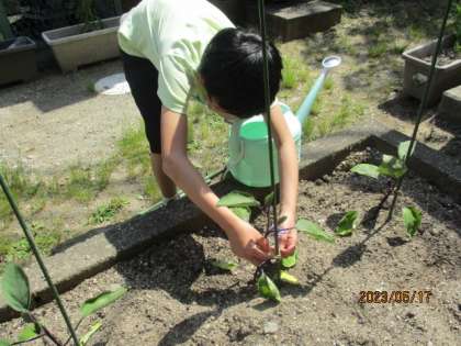 6くみばたけ 支柱を立てました