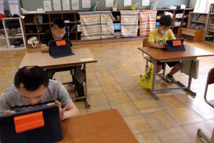 6くみでは国語科の時間に土曜・日曜にしたことをアプリを使って絵日記に表しました。
