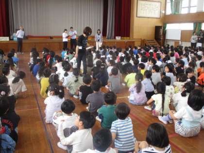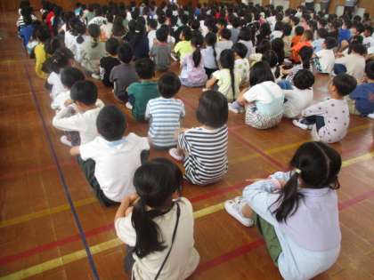 今日は避難訓練を行いました。不審者が学校に入ってきた際の行動を確認し、体育館でお話を聞きました。静かに、真剣に取り組むことができました。