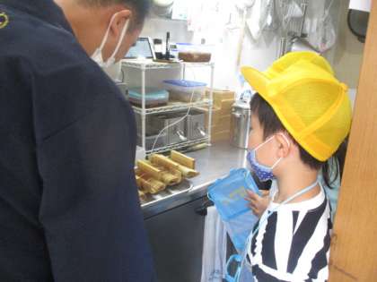 今日もまちたんけんに行きました。お店で働いている人にお話を聞いたり、実際に食べ物を作っているところを見せてもらったグループもありました。「また行きたい!」「食べてみたい!」など、子どもたちは大喜びの様子でした。