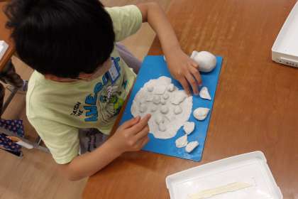 油粘土を丸めたり、こねたり、のばしたり・・。手先をたくさん動かし、力加減を考えることはとても大切なことです。