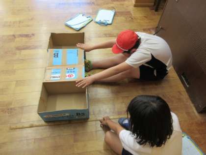 体力テストをしました。ソフトボール投げや、長座体前屈など、様々な種目に挑戦しました。自分の結果を見て「去年よりできてる」とつぶやく子もいました。