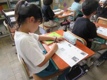 ロイロノートでまとめたことを、今度はプリントの表にまとめました。足なら、何本か、はらには何がついているか、ということも、写真や図の資料を見てしっかりまとめることができました。