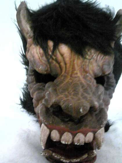 今から、キャンプファイヤーです。火の神は、勿論わたし大橋繁太郎です。自分の勇姿を写すことができないので、特別にマスクをお見せしましょう。火の神の出番を終えた後、子供達が、火の神って校長先生やろ?違うで先生は初めからここにいたで〜.うそや〜.子供達とのこの様なやり取りがやみつきになり、もう10数年間この役をやっています.詳しい様子は、また後ほど.