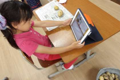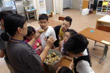 6くみでは、昨日ジャガイモを収穫しました。今日は、そのジャガイモの観察です。