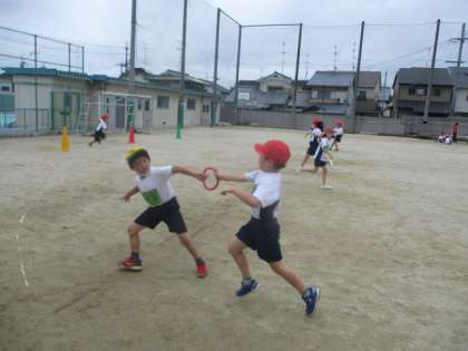 体育の時間では、「リレーあそび」の学習をしています。体を前に向けた状態でバトンを受け取れるようになったり、少し動き出しながら受け取れるようになったりと、どんどん上手になってきました。木曜日からは水あそびもスタートします!