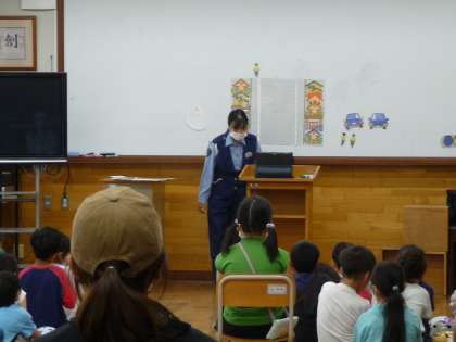 まずは、一般的な交通安全について、1クラスは対面で、他の2クラスはオンラインでお話を聞きました。