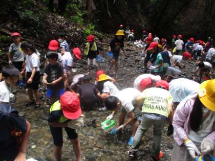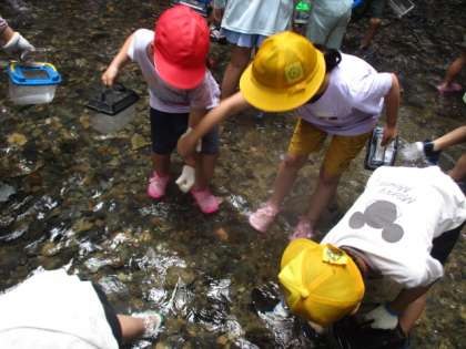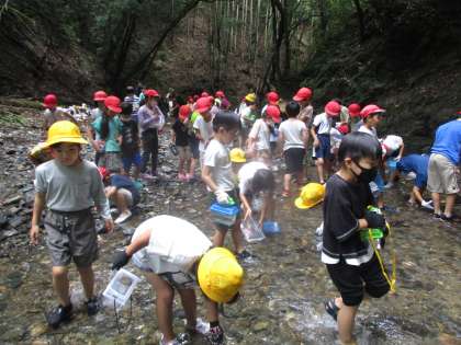 今日は西芳寺川に、生き物探しに行きました。川の中や石の裏など、いろいろな場所を探しました。学校ではなかなか見ることができない生き物を見つけることができました。
