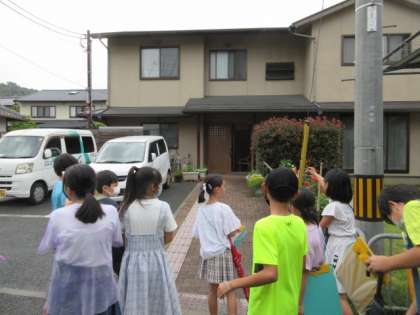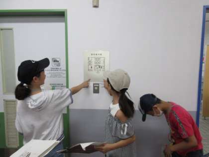 障害のある人がくらしやすく工夫されているのか、地域を歩いて調べました。点字ブロックや点字、車いすマークが実際にあるところを見つけて、「あった!」とみんなで確かめました。地域の人たちが使うところも見つけました。
