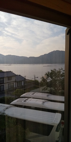 修学旅行二日目です。今日も広島は晴れています。朝日がまぶしいです。