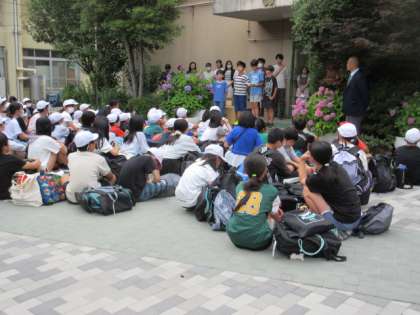 修学旅行から帰ってきました。良い天気に恵まれ、すべてのプログラムを大いに楽しみ、貴重な体験もできました。大切な勉強もみんなと一緒にすることができました。学校に戻ってから、解散式を立派に行いました。最後は、みんなで「最高」「さあ、行こう!」と元気に言うことができました。