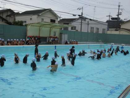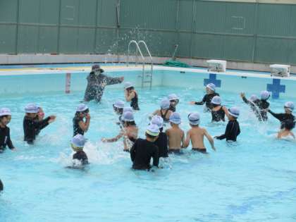 今日も1年生は楽しくプールで活動しました。みんな、約束を守りながら、元気いっぱい活動しました。