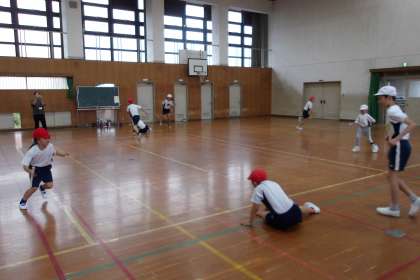6くみは今日の体育科の学習でいろいろな“おにごっこ”をしました。蒸し暑い中でもみんな、とっても元気です!!