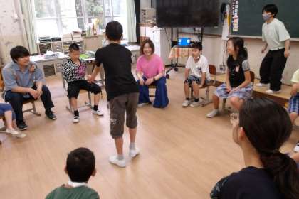劇団のみなさんと楽しくお喋りをしたり、レクリエーションをしたりした後は、いよいよ“お芝居”に挑戦です。