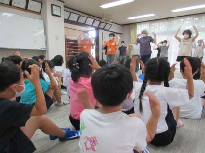 また、「脳トレ」も一緒に参加しました。右と左で動かし方が違うと、なかなか難しいです。地域の方に教えてもらいながら、地域の方々と一緒に楽しく頑張りました。