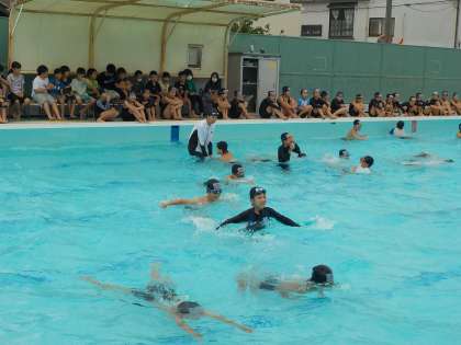 「息継ぎができるようになった!」「初めより長く泳げるようになった!」などこれまでの学習を通して成長できたところを振り返りながら、一生懸命取り組んでいました。