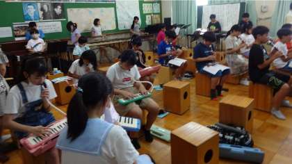 音楽の時間に,ずっと練習をしてきた合奏のビデオ撮りを行いました。その後,みんなで合奏の様子を鑑賞しました。しっかりと練習してきたことがわかる合奏でした。
