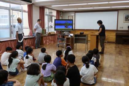熱中症予防には早寝早起き、三食バランスよく食事をとることが大切だそうです。そして、熱を下げるための発汗を、タオルでふき取ってしまうと逆効果になること、濡らして絞ったタオルでふいて、熱を下げるようにするとよいことを教えてくださいました。