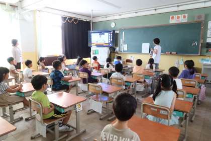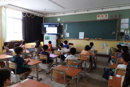 リモートの始業式でしたが、どの学級も真剣に話を聞くことができました。挨拶や返事もできました。