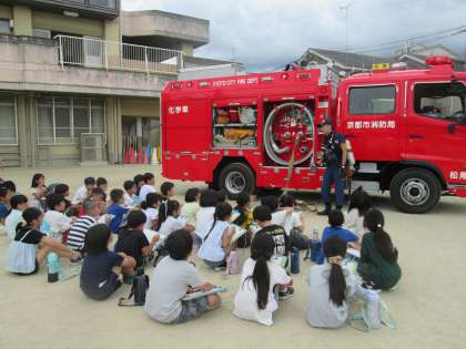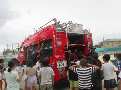 赤くて大きな消防車に子どもたちは興味津々でした。