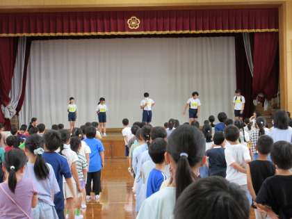 マツリンピックのプログラムにある「ダンス」の練習をしました。6年生の係活動として、ダンス係の子どもたちが下級生をリードしていました。