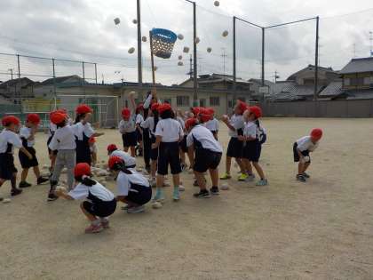 今日は1、2時間目に団体競技の玉入れに加えて,入場や退場の練習をしました。自分はどこの場所でダンスをして、玉入れの場所に行くのか、どのようにして自分の応援席に戻るのか、ということを覚えました。ダンスはみんなとても上手で元気いっぱい踊っていました。本番まであとすこし。とても楽しみになってきました。