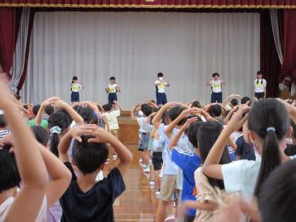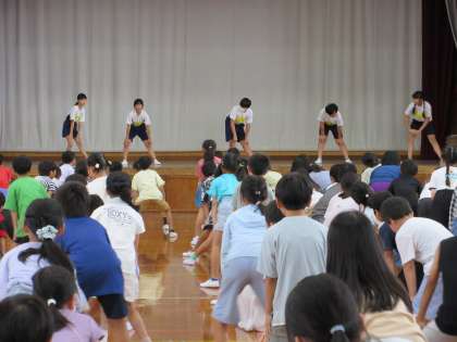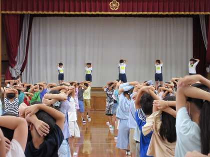 下級生が体育館に集まって練習をする場で、前にでてしっかり体操を教えることができました。