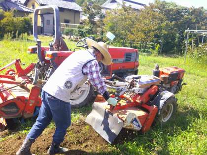 狭い畑は備中ぐわや平ぐわで,広い畑はトラクターなどの大きな機械を使って土をならします。大きな機械に,目を輝かせながら見ていました。