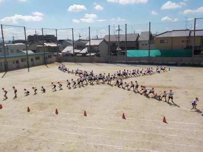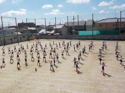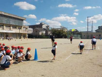 広い運動場に出てみると,立ち位置や周りとの距離の取り方が難しく,なかなか思うようにはいきません。
