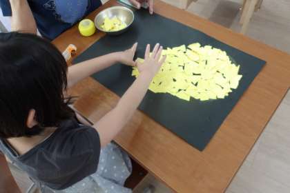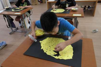シーンとした教室では、みんなが真剣に取り組んでおり、黙々とのりをつけ、貼っていく姿はとってもかっこいいです!!