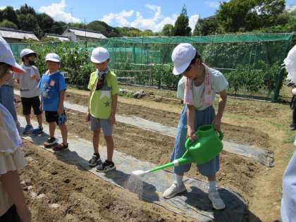 種を植えた後に、水をあげました。