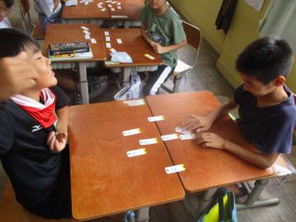 算数の学習で、九九がスタートしました。みんなで何度も唱えたり、九九カードを用いて九九かるたをしながら覚えたり、歌にのせて覚えたりと、毎日楽しく九九の学習を頑張っています。