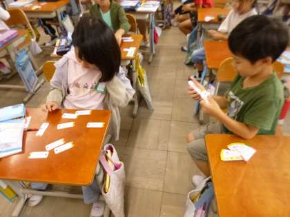 問題を出し合ったり、カード取りをしたりして楽しみながら覚えていました。