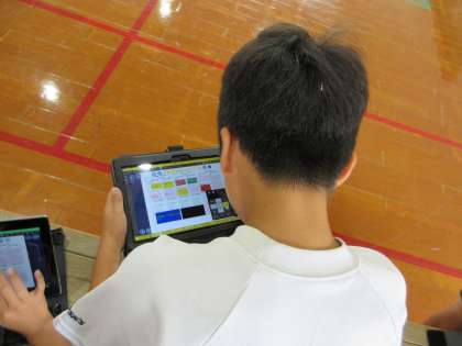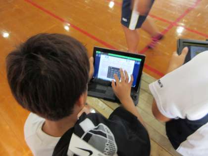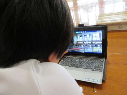 体育のマット運動では、自分の運動をする様子を自分で動画に撮り、自分で動きを確認し、修正する活動をしました。良いところや課題を自分で見つけ、練習をすすめました。振り返りを書くときも、あらためて動画で確認する様子が見られました。