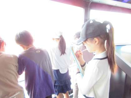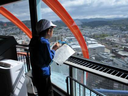 京都タワーの展望台では、望遠鏡でじっくり観察する時もあれば、気づいたことを熱心に書き留める時もありました。デジタルの説明を積極的に読む姿も見られました。使いこなす姿は、さすが普段からデジタルを使って学習をしている子どもたちらしいと思いました。