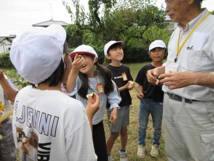 また、実物の野菜の手触りや、葉の香り、木に実っている実も観察しました。実の香りも楽しみました。実物を通して、自然、野菜、畑、のよさを実感しました。とても貴重な体験でした。