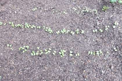6くみ畑に撒いた二十日大根とカブの芽が出ました。