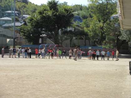 国語では「ちいちゃんのかげおくり」の学習を始めました。とても天気が良かった今日、みんなで実際にかげおくりをしました。
