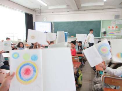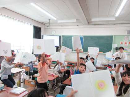 「先生、見て見て!」と子どもたちが一斉にノートを見せてくれました。コンパスを使ってたくさんの円をかいたノートでした。とても上手にかけた円。しっかりかくことができてうれしそうでした。