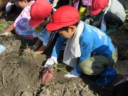 子どもたちは、一生懸命おいもを掘りました。「おいもほり」って、本当に土を懸命にほることなんだなあとつくづく思いました。