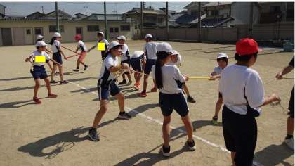 体育の時間に「棒引き」を行いました。棒やロープを引いたり緩めたりを繰り返し、楽しく体を動かしました。来週は綱引きをする予定です。子どもたちは来週を心待ちにしているようでした。