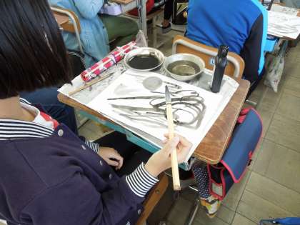 思い思いに筆先を走らせて自分の作品を仕上げていました。